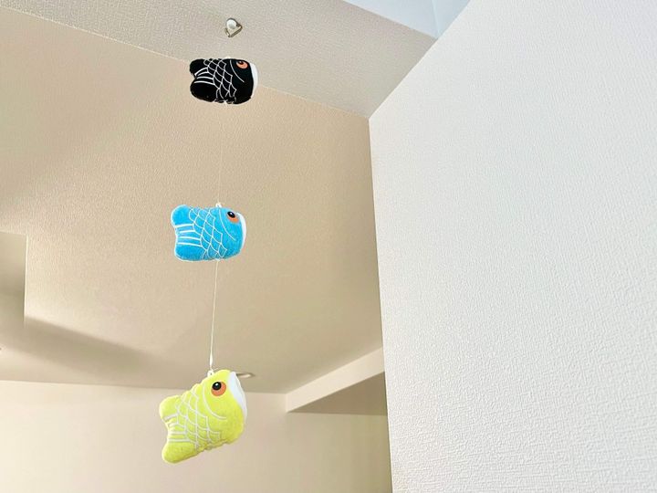 もうすぐ5月5日、端午の節句ですね。セリアで可愛いこいのぼりのオーナメントを見つけたので、ちょこっとアレンジして、モビールをつくってみましたよ。