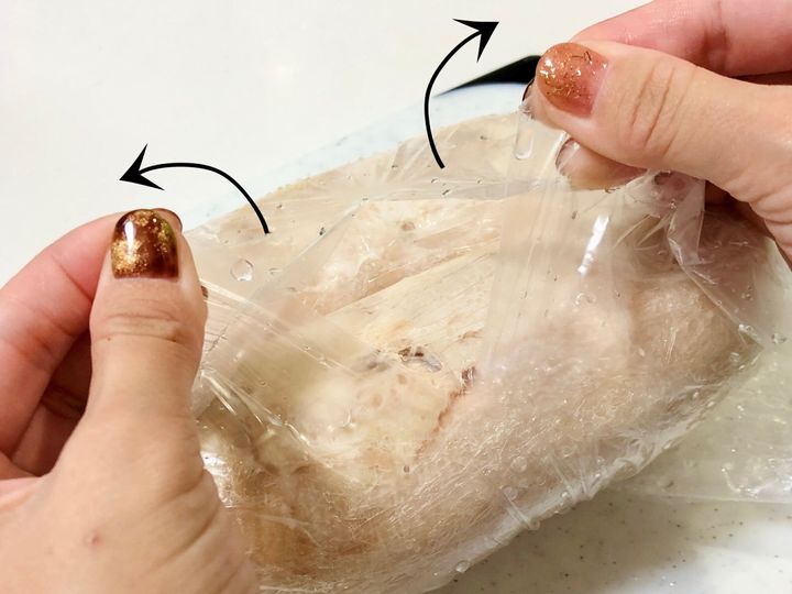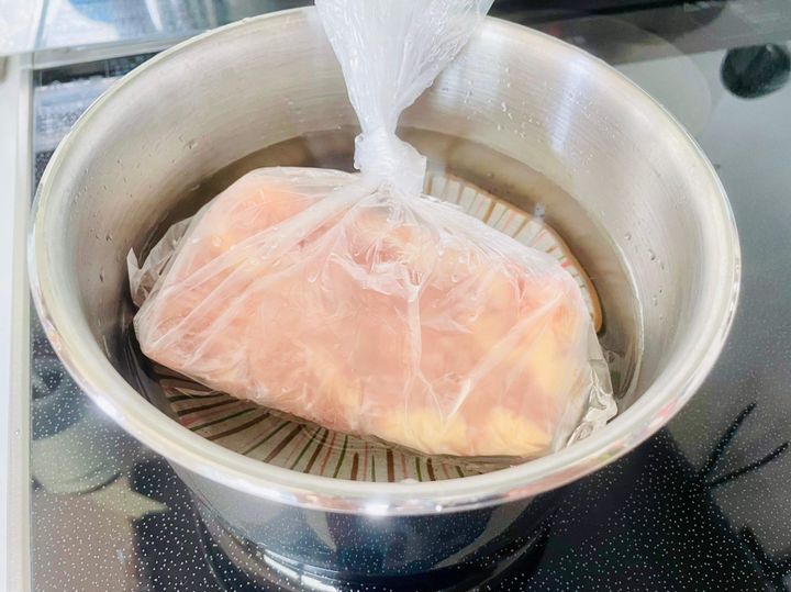 よくつくるのは鶏ハム!袋の中で調味料を揉みこんで、そのまま湯煎するだけ。この袋だけで調理が完結するのて、洗い物はゼロ!