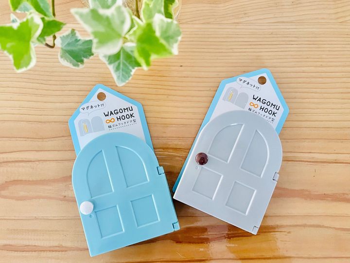 ドアは水色とグレー、ドアノブは白と茶色で、色の組み合わせは全4パターン。どの配色も、インテリアに馴染むナチュラルカラーです。