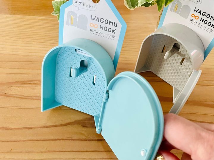 裏にマグネット付き。大きめのマグネットなので、輪ゴムをサッと取っても安定感がありますよ。