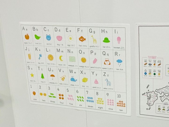 私が店舗で見た際には、「ひらがな」「カタカタ」「九九」「日本地図」「アルファベット」「世界のあいさつ」「ことわざ」の7種類がありました。