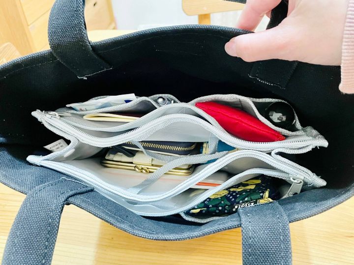 黒×グレーにしたことで、何がどこにあるか一目瞭然!細かいものをたくさん入れても、スッキリ探しやすいカバンになりましたよ。