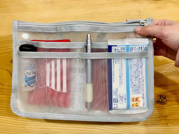 ダイソーのアイテム1つで、スッキリ探しやすいカバンがつくれますよ。