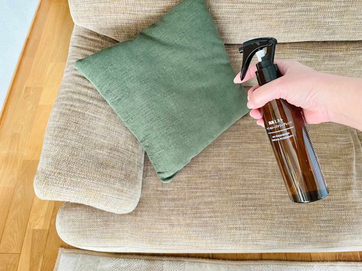 ソファやカーテンなど、布製品の抗菌にも力を発揮。全体的に表面がしっとりする程度スプレーし、そのまま乾かすだけです。簡単に抗菌できて、良い香りにも癒されて、まさに一石二鳥!