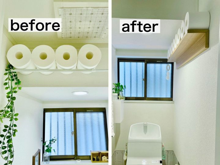これまでトイレットペーパーは、つっぱり棒を使って天井近くに収納していました。そのため、よく「お母さーん!」とトイレに呼び出されていたのです。
