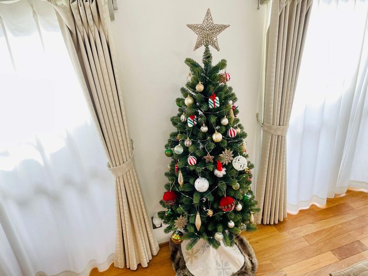 我が家のツリーは150cmと大きめで、2分割できるタイプ。ツリーを入れてもまだゆとりがあります。