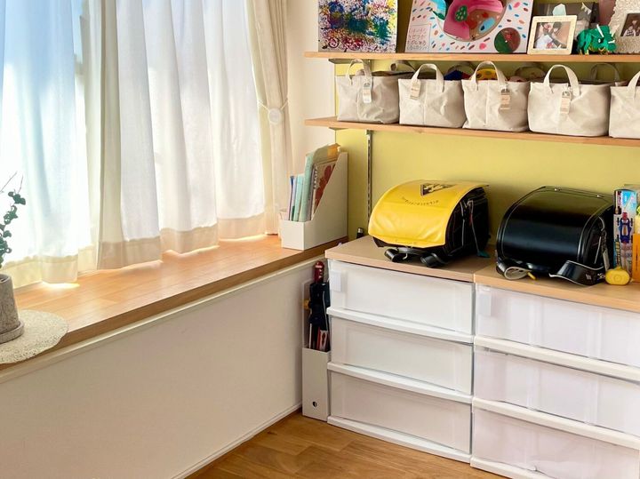 筆者宅では、小学生のうちはリビング学習にして、ランドセルなど学校関係のものは全てリビングに置いています。子どもの様子も見られて、一石二鳥ですね!