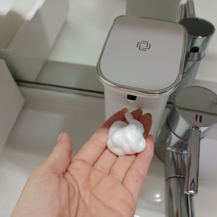 このオートソープディスペンサーは、手をかざすだけで自動的に泡が出てくるので子どもも楽しく簡単に手が洗えて、とても便利です。