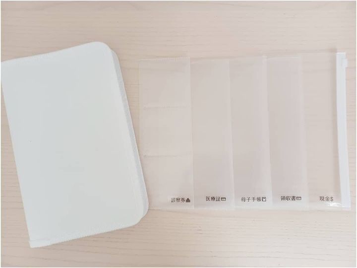 我が家ではこれ一つですぐに病院に行ける様にしたかったので、診察券、医療証、薬手帳、母子手帳、領収書、現金を入れるようにしています。