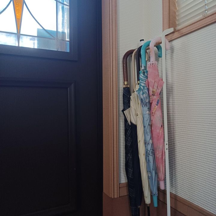 家族が多いと傘の数も増えますが、玄関には家族分一本づつしか置きません。