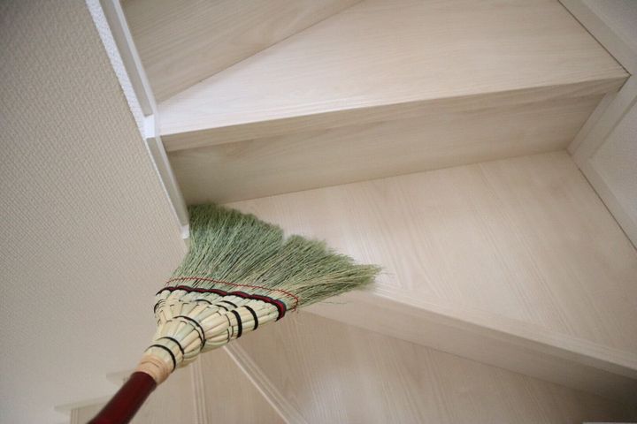 階段は、これまた掃除機にノズルを付けなければならない面倒な部分ですが、座敷ほうきなら、階段の隅や回り階段の角度が狭い部分などにもしっかり入り込んでくれます。