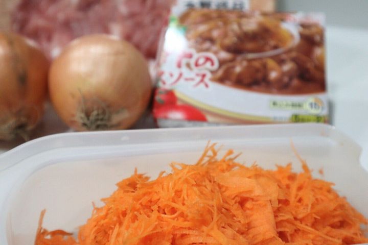玉ねぎの食感を損なわないよう、また、にんじん自体も玉ねぎの食感に近づくよう、にんじんは千切りや細切りにすることがポイントです。