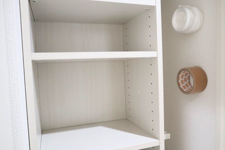 クローゼットには、スキマがあったり壁面が空いていたりと、使える空間がたくさんあります。ガムテープ類の浮かせる収納は、クローゼットのそんな空間を有効活用できます。