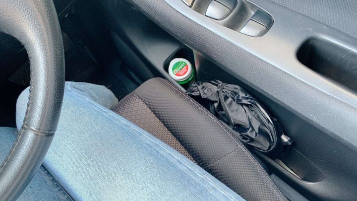 大きく広がったサンシェードも使わないときはコンパクトに折りたたんで、ドアポケットにスッキリ収納。これだと車内でも場所を取らずに保管することができますね。