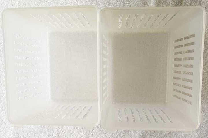 ボックスを使うと,野菜についている汚れが直接庫内に落ちることがないので,掃除が楽なこともメリット。