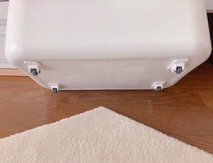 底に100円ショップのコロコロをつけることで、子どもでも軽々引き出すことができます。中身が重たいものの場合もこのような使い方がおすすめです。