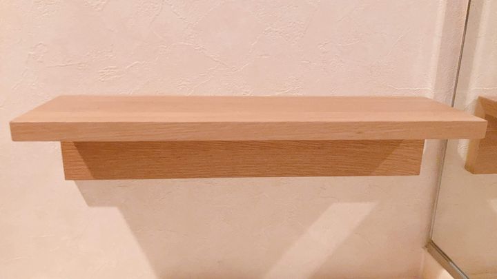 一つ目のアイテムは無印良品の【壁につけられる家具棚・オーク材突板・44センチ(税込1,990円)】