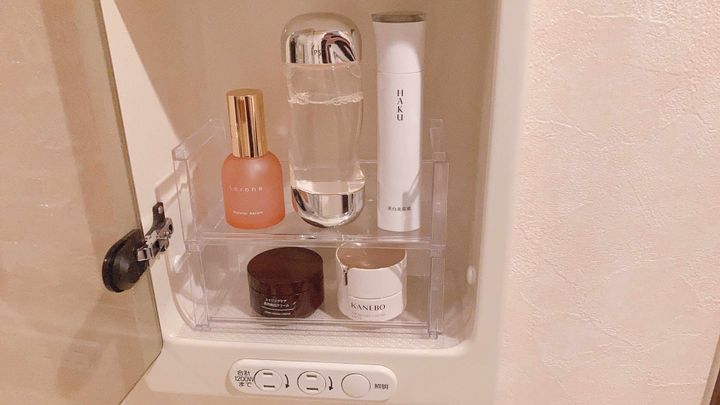高さの低いクリームやバームなどは下段に並べることができて、上段に高さのある化粧水などを置くことで、収納力が1.5~2倍にアップします!見た目もクリアなのでインテリアを邪魔することもなくスッキリオシャレに収納が可能です。