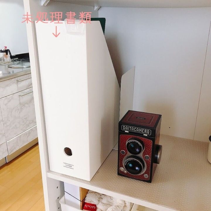 頻繁に使うものや、これから処理しなくてはいけないものと一緒にしてしまうと、わかりにくくなってしまうので、頻度でわけて収納しておくのがオススメ。
