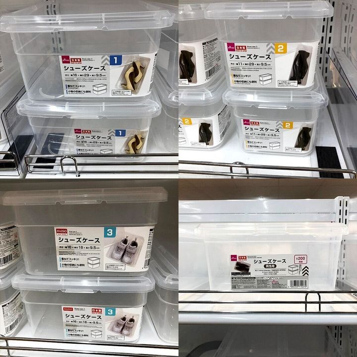 シューズケース、という名前で販売されていますが、中身の見える透明な収納ボックス。