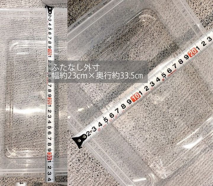 ふたをつけずに使う場合は内寸より幅、奥行きともに1.5㎝ほど大きいようです。