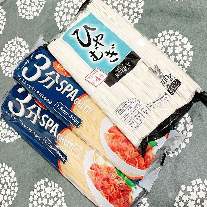 カップ麺だとかさばってしまうこともあり、私はパスタや乾麺のうどんなど(今はひやむぎですが)を用意しています。