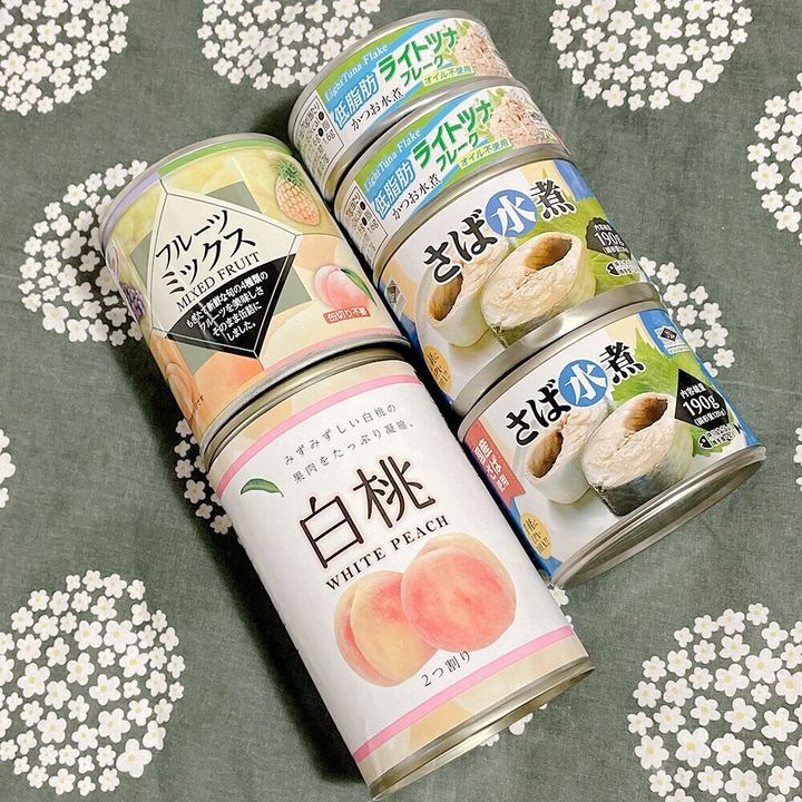 普段は食べない味付きのものも用意していますが、ツナ缶、サバ缶、フルーツ缶詰はローリングストックにしています。