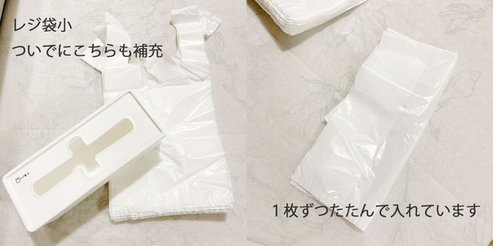 小さいレジ袋もプルアウトボックスに詰め替えています。