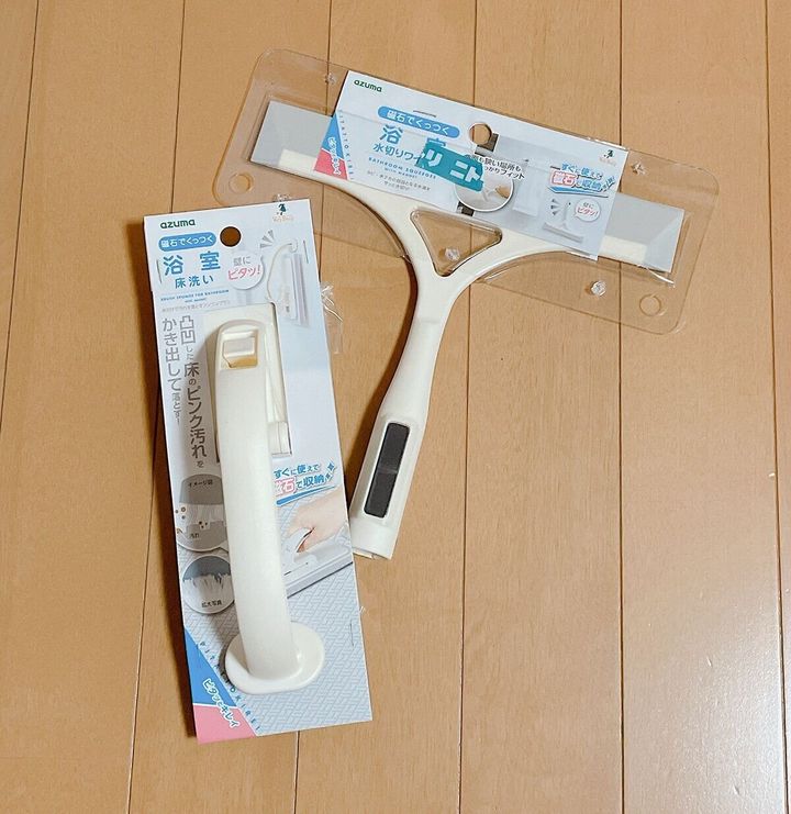 今回買ったのは「磁石でくっつく」というこの床用ブラシと水切りワイパー。
