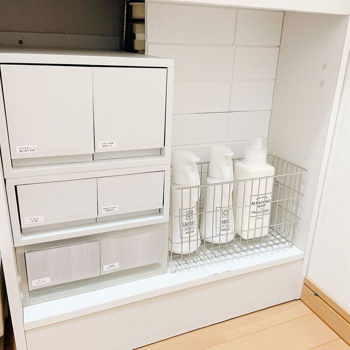 洗面台の下に洗濯洗剤を収納しています。