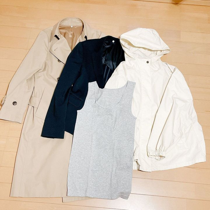 撥水ジャケットは去年、トレンチコートは3年前購入。