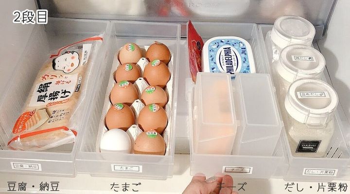 いつも冷蔵庫に入っているな、と思うものは、ケースを使って場所を決めてしまえば迷子になりません。