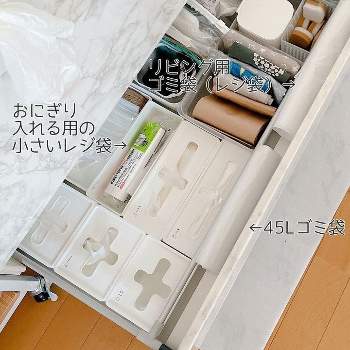ストックはキッチンの同じ引出しに収納してあるので、45Lのとなりに。