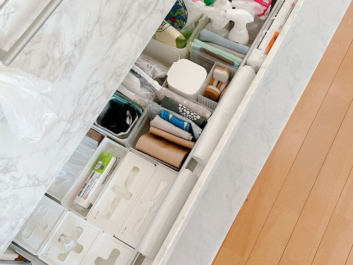 この引き出しをあければ、ゴミ袋も水切りネットも洗剤もすべてまとまっています。