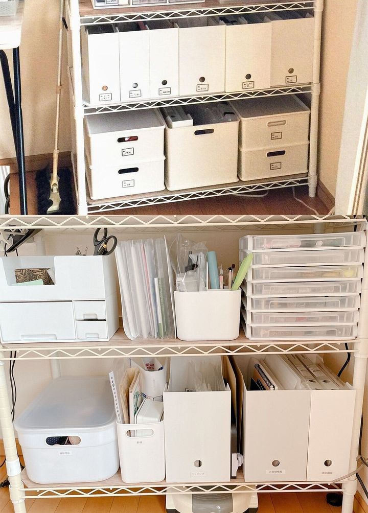 ラックの最下段にボックスを重ねていましたが、とても使いにくく、今はやめています。