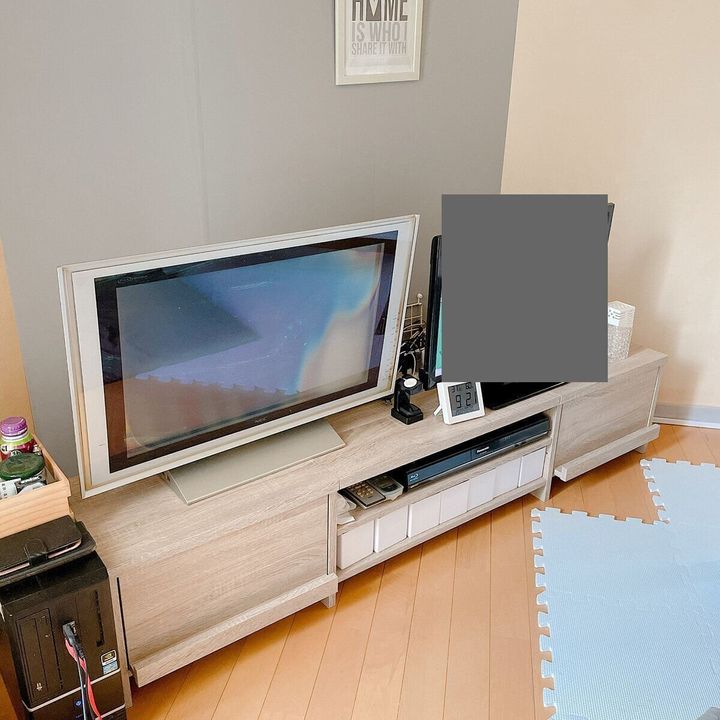 今年、夫が急に買い替える気になって、この夏に新しいテレビ台が我が家にやってきました。