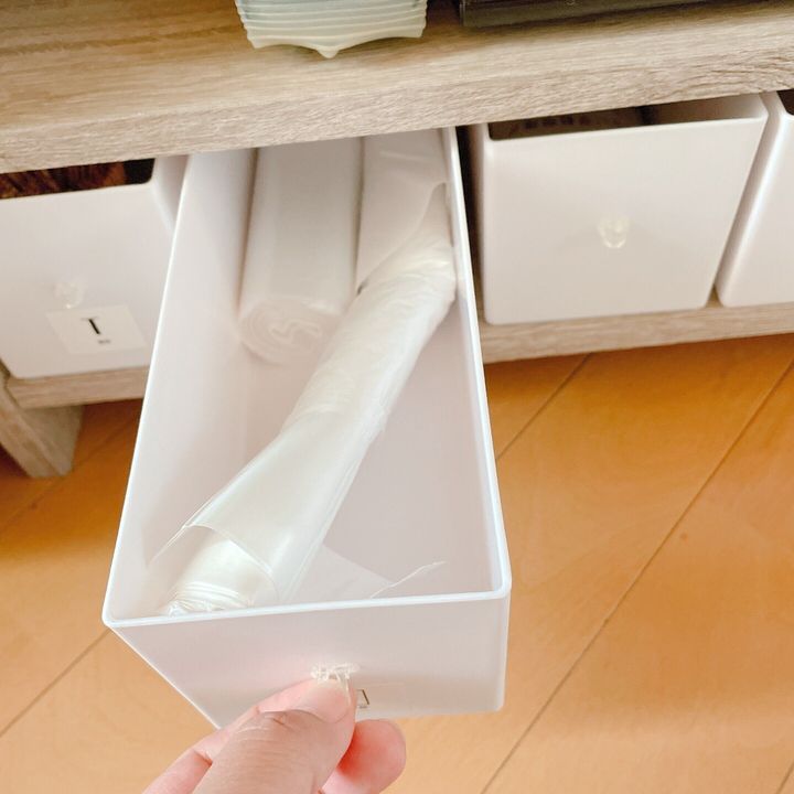 ただ、このケースに今まで使っていたごみ袋は入らなかったので、今後入るものに変えるつもりで上段の隙間に入れたままにしていたんです。