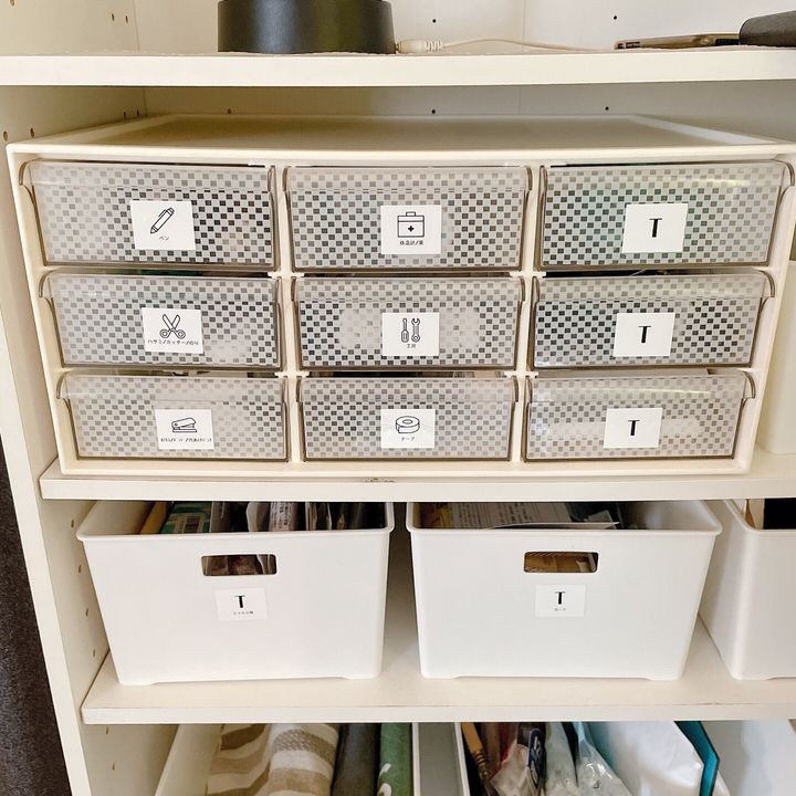 収納場所に、中に入れるものを書いておくラベリング。