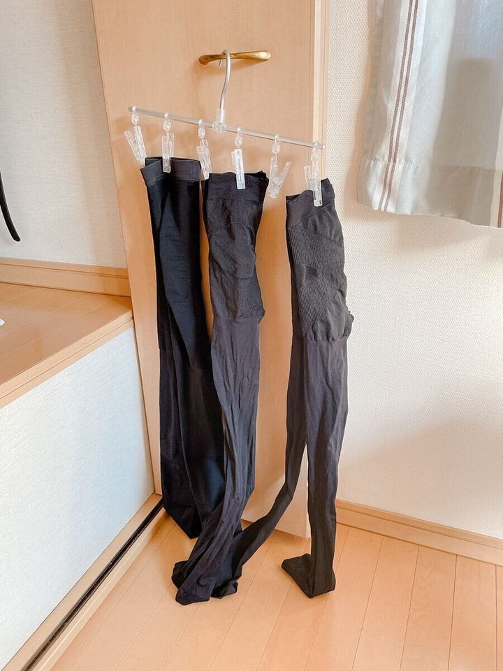 私はレギンスをハンガーに、タイツは引き出しに収納しています。
