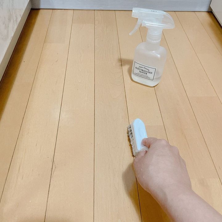 一般的なフローリングの我が家では、床の溝にアルカリ電解水を吹きかけてブラシで汚れをかきだす、というとても地道な掃除を年に1度はしているのですが、この掃除をしたあとは、素足で歩くのがとても気持ち良いんです。