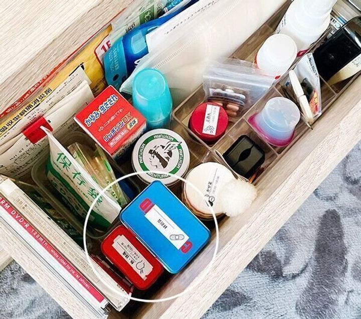 サイズの違うものや種類の違うものも「絆創膏」の1つの缶にまとまっているので、使いたいときにどれだっけ?と探す必要もありません。