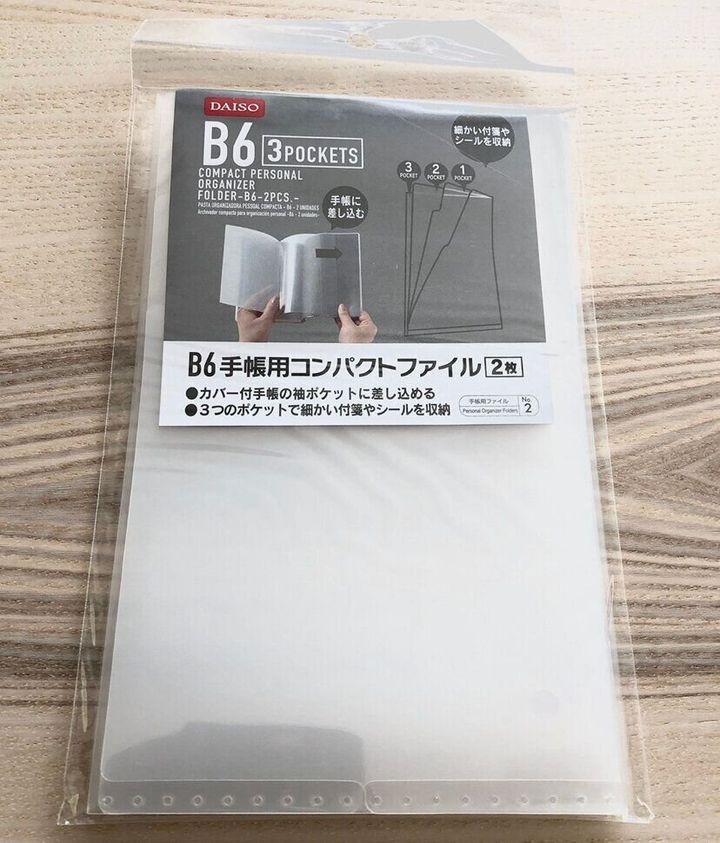 手帳っていろいろ挟んでおきたくなりますよね。付箋やシール、取っておきたいメモなどなど・・・。なんでもかんでもカバーに挟んでしまうと何が何だかわからなくなってしまうことも。そんな時に、こちらの手帳用のファイルを活用するとスッキリします。100均一で売っている「手帳用コンパクトファイル」カバーのポケット部分に差し込むだけで収納力がアップします。