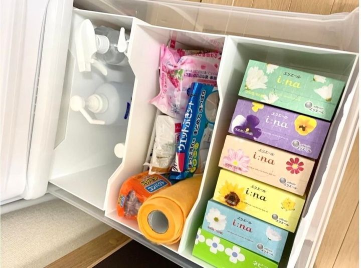 ティッシュや洗剤も決めた収納場所に入るだけ。