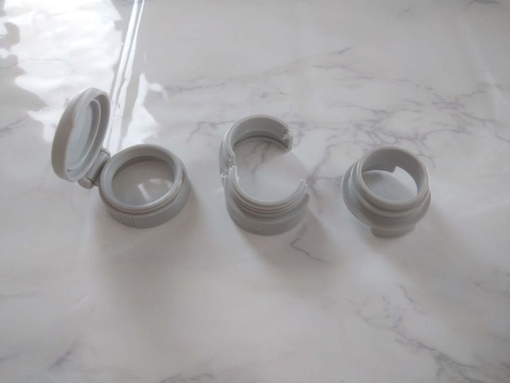 取り付け方はとても簡単です。袋キャップは3つのパーツから出来ていて、写真の右から順番に付けていきます。