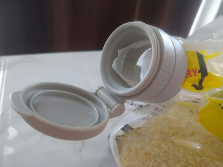 口が大きくしっかり開くので中身が取り出しやすく、出し過ぎたり、横からこぼれたりすることもありません。使用後も蓋をカチッと締めるだけで楽々です。
