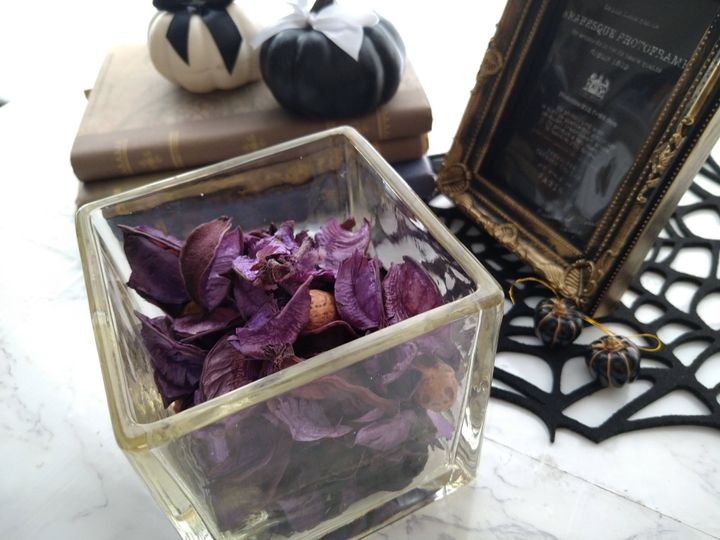 こちらもハロウィン用ではありませんが、シックなハロウィンインテリアに色を足したいならこの紫のポプリがおススメ。匂いも楽しめて、気分をさらににアップさせてくれますよ!