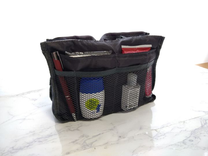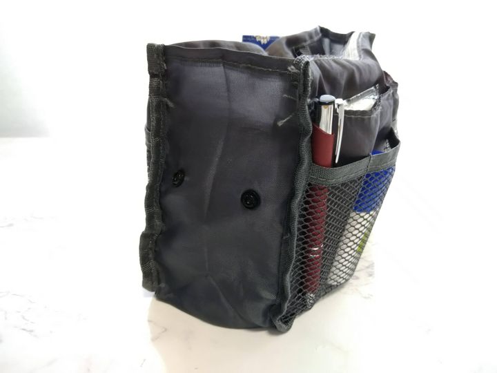 このバッグインバッグには、両サイドに様々なサイズのポケットがついています。