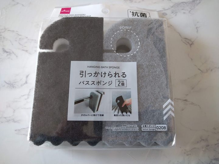 引っ掛けられるバススポンジ2個 抗菌 ダイソー¥110(税込)