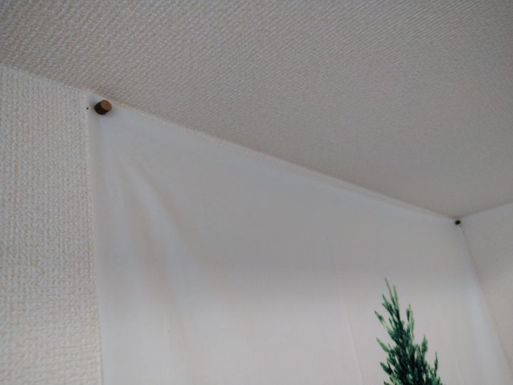 タペストリーなので組立不要。壁さえあれば押しピンで留めて完成です。大きなツリーを置くスペースがないお宅でも、壁さえあれば飾れます。