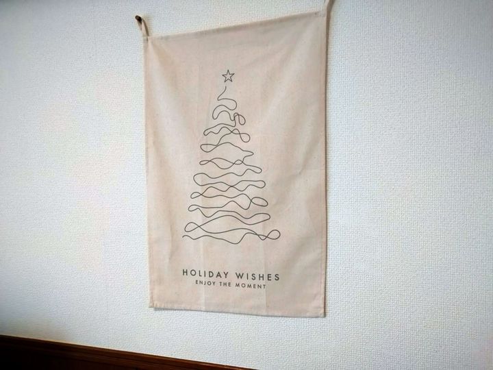 タペストリーツリーとは、クリスマスツリー柄の壁掛け用布飾りです。百円均一や雑貨屋さん、手芸用品店などで取り扱われています。